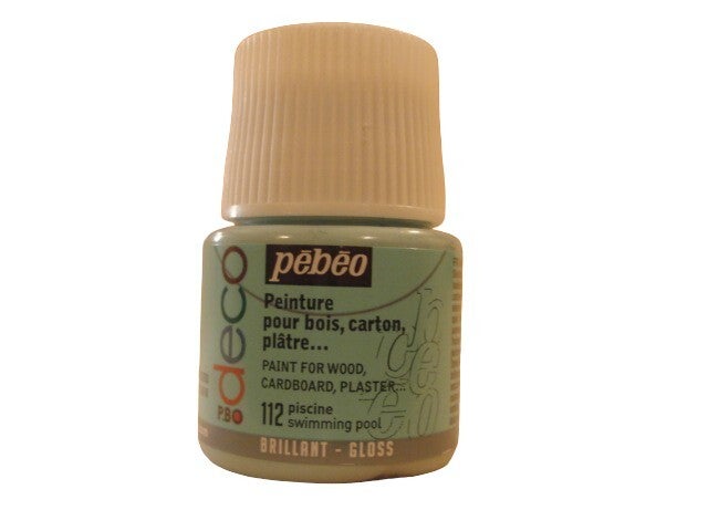 Pébéo - couleurs acryliques brillantes pour bois, plâtre, terre-cuite, carton, métal... Diluables à l'eau, miscibles entre elles. Séchage hors poussière~: 30mn et 24h à coeur. Indélébiles une fois sèches. 45ml = 0,5m2