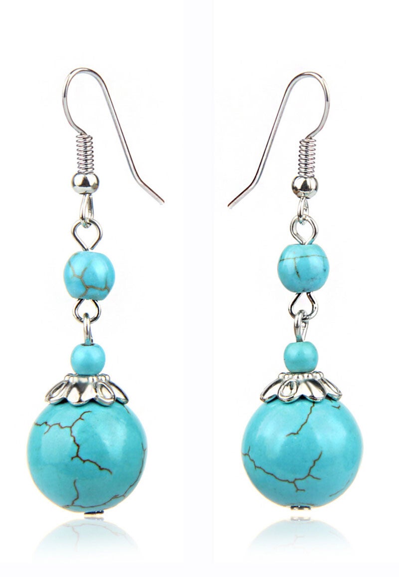 Boucles d'oreilles composées de perles turquoise howlite, sur crochets en métal argenté.