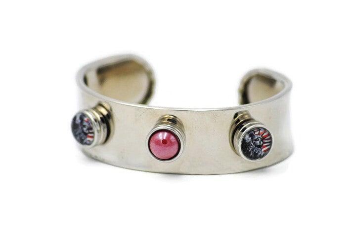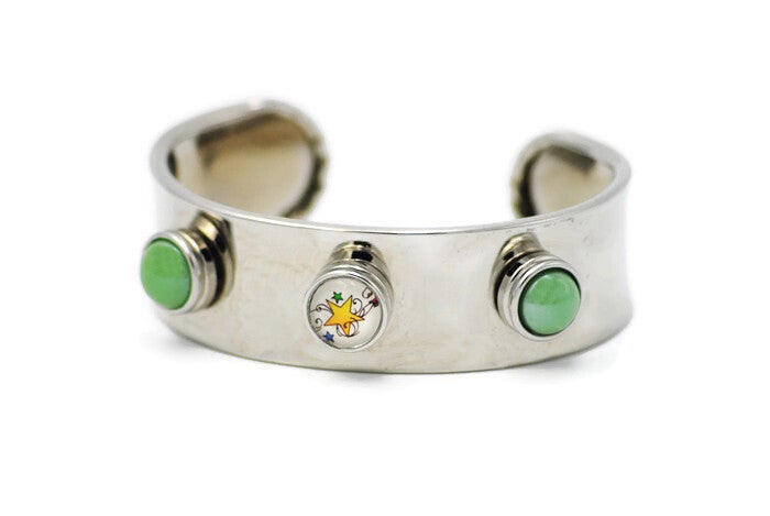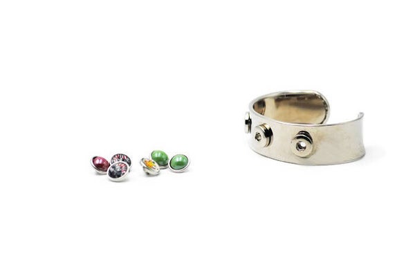 bracelet manchette 3 mini pressions interchangeables en métal argenté.