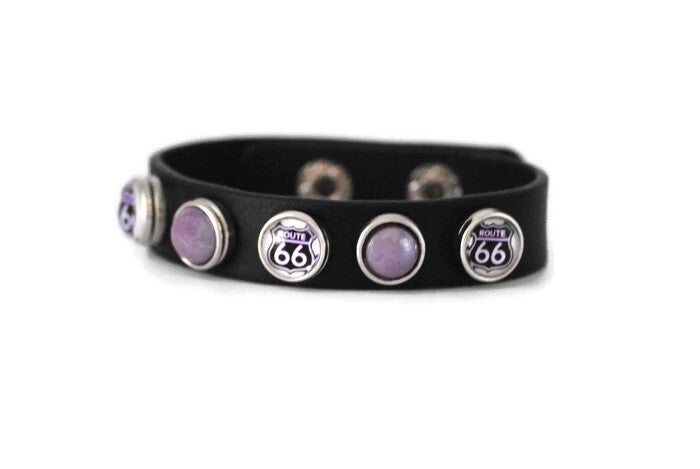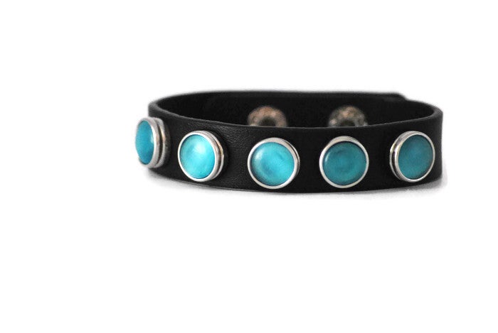 bracelet 5 mini pressions interchangeables en simili cuir noir.