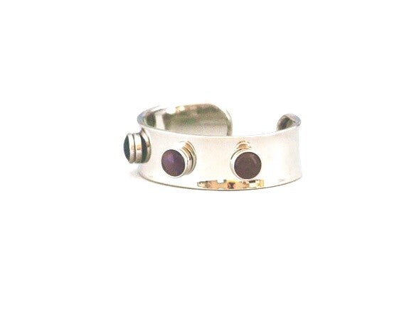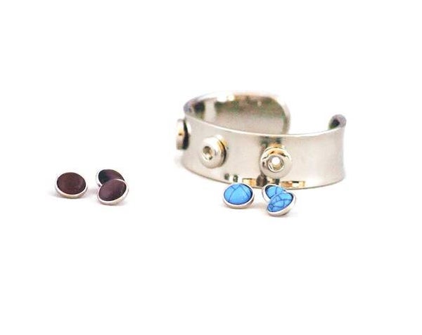 bracelet manchette 3 mini pressions interchangeables en métal argenté.