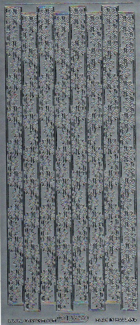 planche de stickers argentés bordures fleurs pour carterie ou scrapbooking
