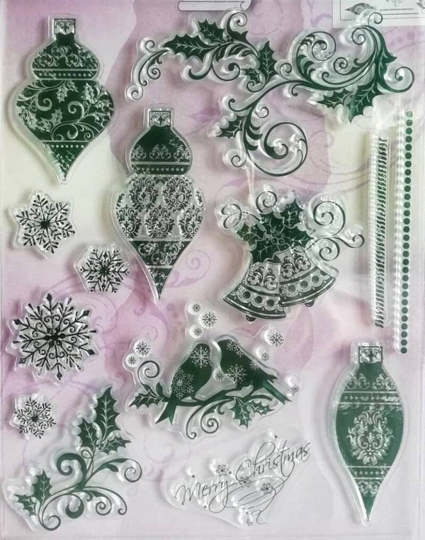 set de 12 tampons acryliques transparents motifs décorations de Noëltampons à utiliser avec un bloc acrylique pour tampons non montés.dimensions des motifs :de 1 x1cm à 8 x 5cm